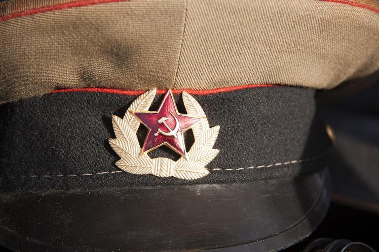 Keywords: flea market militaria military cap red army hammer and sickle nippes junk were used antique old used