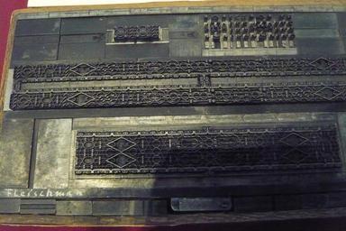 Keywords: Fleischman music font set for decorative edging.jpg Exhibition about Haarlem printing company Joh Enschedé in St Janskerk Haarlem by North Holland archives <br> Fleischman music font set for decorative edging Photo of object 2013-06-25 16 07 47 Joh Enschedé PD-old-100 Museum Enschedé Haarlem Joan Michael Fleischman