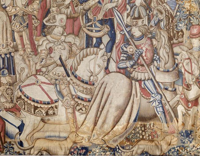 | Keywords: Flemish - Meleager and Atalanta Setting Out to Hunt the Calydonian Boar - Walters 829 - Detail B.jpg This tapestry originally even larger was woven on a single loom for the great hall of a nobleman's estate It provided insulation against winter cold and decoration for an otherwise austere environment Here the young Greek prince Meleager prepares to hunt the Calydonian Boar a story told by the Roman poet Ovid Meleager gathers heroes of ancient Greece - including Jason Theseus Nestor and Peleus - to chase the savage wild boar sent by the goddess Diana to ravage the lands of his father the king of Calydon In front of the left column is the brave and beautiful Atalanta later beloved of Meleager She will kill the boar with a lance held by an attendant Hunting wild boar was a privilege reserved to the nobility and was validated and glorified in the eyes of contemporaries by representations of heroic hunts from the mythic past such as this one ca 1475 Late Medieval wool H 192 15/16 x W 164 3/16 in 490 x 417 cm accession number 82 9 610 Raoul Heilbronner Paris Henry Walters Baltimore date of acquisition unknown by purchase Walters Art Museum Henry Walters Acquired by Henry Walters place of origin Flanders Walters Art Museum license 2D Medieval art in the Walters Art Museum Flemish tapestry in the Walters Art Museum Meleager and Atalanta Setting Out to Hunt the Calydonian Boar Media contributed by the Walters Art Museum needs category review Flemish tapestry |