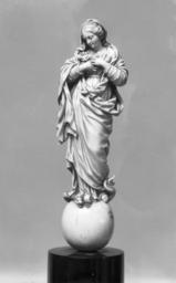 Keywords: Flemish - Virgin of the Immaculate Conception - Walters 71402.jpg The Virgin as the Immaculata conceived in immaculate purity stands on the globe of the world originally supported by cherubs in triumph over sin Revelation 12 represented by the serpent that tempted Eve with a forbidden apple The archdukes were devoted to the Immaculata In celebration of Albert's military victories over Dutch forces and the truce of 1609 they built a chapel to her The subtly flowing voluminous drapery and sweetly sensitive face are characteristic of ivory carving in Liège in the independent Bishopric of Liège within the Southern Netherlands between 1680 1710 ivory cm 20 9 accession number 71 402 2795 Henry Walters Baltimore date and mode of acquisition unknown Walters Art Museum Henry Walters Acquired by Henry Walters Ivory The Sumptuous Art The Walters Art Gallery Baltimore 1983-1984 place of origin Liège Belgium Walters Art Museum license Baroque sculpture in the Walters Art Museum Flemish religious art in the Walters Art Museum Media contributed by the Walters Art Museum needs category review |