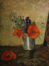 Keywords: 'Fleurs D'Ete Dans Un Gobelet' by Paul Gauguin.jpg Artwork Creator Paul Gauguin 1885 oil on canvas cm 33 24 8 accession number object history Mette Gauguin France possibly <br/>Ambroise Vollard Paris possibly acquired from the above on May 8 1907 <br/>Gilbert Kahn New York acquired by 1950 <br/>Private Collection New York<br/>Acquired from the above circa the 1980s<br/>sale at Litchfield County Auctions Connecticut June 29 2016<br/>sold at Sotheby's New York 15 November 2016 lot 128 exhibition history credit line bottom right P G Gauguin catalogues 172 https //www liveauctioneers com/news/auctions/upcoming-auctions/paul-gauguin-still-life-unidentified-decades-star-litchfield-county-auctions-june-29-30-sale/ liveauctioneers com<br/>http //www sothebys com/en/auctions/ecatalogue/2016/impressionist-modern-art-day-sale-n09568/lot 128 html Sotheby's Litchfield County Auctions Connecticut June 29 2016 via AtyDaily com <gallery>Paul Gauguin - Fleurs d'été dans un gobelet ca 1885 jpg</gallery> PD-old-100-1923 DEFAULTSORT Gauguin; Still-life 1885; Sotheby's 2016 Still life paintings by Paul Gauguin 1880s paintings by Paul Gauguin 1885 still-life; Sotheby's 2016 Paintings by Paul Gauguin in private collections Still-life paintings of flowers 1880s still-life paintings 1880 paintings from France |