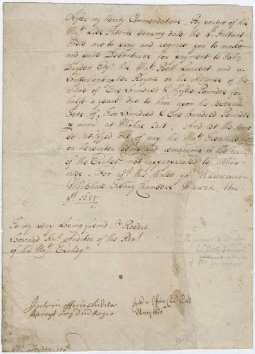 Keywords: Flickr - Beinecke Flickr Laboratory - (Warrant for payment of L150, half year's allowance as poet laureate. Treasury Chambers, Whitehall) (1).jpg 1 l folded manuscript 30 x 22 cm Folder or box number Folder 4630 Genre/Form Business records Manuscripts Cite as James Marshall and Marie-Louise Osborn Collection Beinecke Rare Book and Manuscript Library Yale University Repository http //www library yale edu/beinecke Beinecke Rare Book Manuscript Library Yale University Bibliographic Record Number 2032733 Call Number OSB MSS FILE View our Record http //beinecke library yale edu/dl_crosscollex/brbldl_getrec asp fld bib id 2032733 Permalink http //www flickr com/photos/25923731 N05/3118424355/ Warrant for payment of L150 half year's allowance as poet laureate Treasury Chambers Whitehall 2008-12-18 14 09 http //www flickr com/people/25923731 N05 Beinecke Flickr Laboratory PD-old Poetry awards Scanned English texts Handwriting Manuscripts in the United States Images from the Beinecke Rare Book and Manuscript Library |