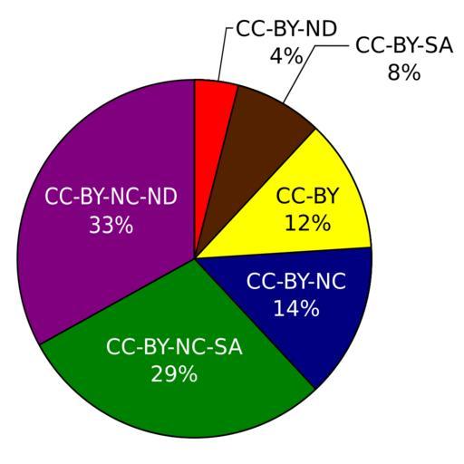 Keywords: Flickr license types.svg en The different types of CC licenses used on Flickr Own Acablue 2009-07-10 page</gallery> SVG pie charts Flickr