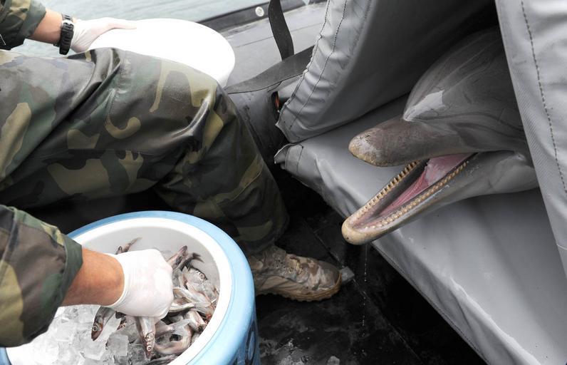 Keywords: Flickr - Official U.S. Navy Imagery - A dolphin is transported. (1).jpg SAN DIEGO July 13 2012 Koa an Atlantic Bottlenose dolphin is shown being transported in a rigid-hulled inflatable boat RHIB boat en route to a MH-53E Sea Dragon of Helmineron Fourteen The Navy uses dolphins operated by Explosive Ordnance Disposal Mobile Unit EODMU 1 to locate and mark mines for neutralization or exploitation Twenty-two nations more than 40 ships and submarines more than 200 aircraft and 25 000 personnel are participating in RIMPAC exercise from Jun 29 to Aug 3 The world's largest international maritime exercise RIMPAC provides a unique training opportunity that helps participants foster and sustain the cooperative relationships that are critical to ensuring the safety of sea lanes and security on the world's oceans RIMPAC 2012 is the 23rd exercise in the series that began in 1971 U S Navy photo by Mass Communication Specialist 2nd Class Shannon E Renfroe/Released 120713-N-FC670-034 Join the conversation http //www facebook com/USNavy www facebook com/USNavy http //www twitter com/USNavy www twitter com/USNavy http //navylive dodlive mil navylive dodlive mil http //www flickr com/photos/usnavy/7643439338/ A dolphin is transported 2007-12-31 17 25 http //www flickr com/people/56594044 N06 Official Navy Page from United States of America MC2 Shannon E Renfroe/U S Navy U S Navy photo PD-USGov-Military-Navy Official U S Navy Imagery http //flickr com/photos/56594044 N06/7643439338 2012-11-12 20 13 30 cc-by-2 0 United States Navy Marine Mammal Program Transport of animals Feeding animals Tursiops truncatus captive Explosive Ordnance Disposal Mobile Unit 1 |