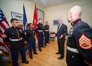 Keywords: Flickr - Official U.S. Navy Imagery - The SECNAV speaks with Marines assigned to the Marine Security Detachment in Tirana, Albania..jpg TIRANA Albania June 7 2012 Secretary of the Navy SECNAV Ray Mabus speaks with Marines assigned to the Marine Security Detachment MSG in Tirana Albania While in Albania Mabus met with Albanian officials to discuss continued bilateral naval cooperation He expressed appreciation for Albania's continued commitment to Afghanistan to stability in Western Balkans and he encouraged efforts to strengthen the country's defense reforms and initiatives U S Navy photo by Chief Mass Communication Specialist Sam Shavers/Released 120607-N-AC887-001 Join the conversation http //www facebook com/USNavy www facebook com/USNavy http //www twitter com/USNavy www twitter com/USNavy http //navylive dodlive mil navylive dodlive mil http //www flickr com/photos/usnavy/7176284637/ The SECNAV speaks with Marines assigned to the Marine Security Detachment in Tirana Albania 2012-06-07 04 13 http //www flickr com/people/56594044 N06 Official Navy Page from United States of America MCC Sam Shavers/U S Navy U S Navy photo PD-USGov-Military-Navy Official U S Navy Imagery http //flickr com/photos/56594044 N06/7176284637 2012-11-13 09 06 13 cc-by-2 0 Ray Mabus |