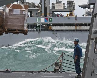 | Keywords: Flickr - Official U.S. Navy Imagery - USS Mustin receives supplies at sea..jpg EAST CHINA SEA Oct 18 2012 Boatswain ™s Mate 3rd Class Tam Tran assigned to the guided-missile destroyer USS Mustin DDG 89 stands by as cargo from the Military Sealift Command fleet replenishment oiler USNS Tippecanoe T-AO 199 is transferred to Mustin during a replenishment at sea Mustin is currently on patrol in the western Pacific Ocean The U S Navy is constantly deployed to preserve peace protect commerce and deter aggression through forward presence Join the conversation on social media using warfighting U S Navy photo by Mass Communication Specialist 2nd Class Devon Dow/Released 121018-N-MU720-231 Join the conversation http //www facebook com/USNavy www facebook com/USNavy http //www twitter com/USNavy www twitter com/USNavy http //navylive dodlive mil navylive dodlive mil http //www flickr com/photos/usnavy/8103289919/ USS Mustin receives supplies at sea 2012-10-18 12 38 http //www flickr com/people/56594044 N06 Official Navy Page from United States of America MC2 Devon Dow/U S Navy U S Navy photo PD-USGov-Military-Navy Official U S Navy Imagery http //flickr com/photos/56594044 N06/8103289919 2012-11-12 02 02 26 cc-by-2 0 Images from United States Navy to check |