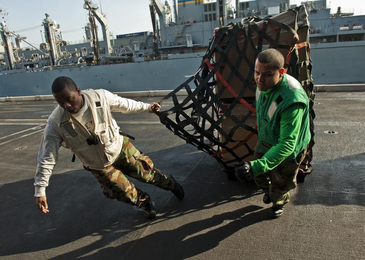 | Keywords: Flickr - Official U.S. Navy Imagery - Sailors pull cargo aboard the Nimitz-class aircraft carrier USS John C. Stennis..jpg ARABIAN SEA Jan 5 2012 Yeoman 3rd Class Jaren Cleveland and Logistics Specialist Seaman Luis Colon pull cargo aboard the Nimitz-class aircraft carrier USS John C Stennis CVN 74 during a replenishment at sea with the Military Sealift Command fast combat support ship USNS Rainier T-AOE 7 John C Stennis is deployed to the U S 5th Fleet area of responsibility conducting maritime security operations and support missions as part of Operation Enduring Freedom U S Navy photo by Mass Communication Specialist 3rd Class Benjamin Crossley/Released 120105-N-BT887-589 http //www flickr com/photos/usnavy/6667063339/ Sailors pull cargo aboard the Nimitz-class aircraft carrier USS John C Stennis 2012-01-09 09 47 http //www flickr com/people/56594044 N06 Official Navy Page from United States of America MC3 Benjamin Crossley/U S Navy U S Navy photo PD-USGov-Military-Navy Official U S Navy Imagery http //flickr com/photos/56594044 N06/6667063339 2012-11-14 07 04 11 cc-by-2 0 Images from United States Navy to check |