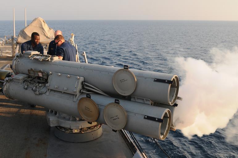 | Keywords: Flickr - Official U.S. Navy Imagery - Sonar Technician Seaman Darian Johnson fires an air slug from a MK-32 surface vessel torpedo tube..jpg ARABIAN SEA Oct 19 2011 Sonar Technician Seaman Eugene Roberts right and Chief Sonar Technician Steven Kincade watch as Sonar Technician Seaman Darian Johnson fires an air slug from a MK-32 surface vessel torpedo tube aboard the guided-missile destroyer USS Mitscher DDG 57 Mitscher is deployed to the U S 5th Fleet area of responsibility conducting maritime security operations and support missions U S Navy photo by Mass Communication Specialist 3rd Class Deven B King/Released 111019-N-XQ375-346 http //www flickr com/photos/usnavy/6279399867/ Sonar Technician Seaman Darian Johnson fires an air slug from a MK-32 surface vessel torpedo tube 2011-10-25 08 14 http //www flickr com/people/56594044 N06 Official Navy Page from United States of America MC3 Deven B King/U S Navy U S Navy photo PD-USGov-Military-Navy Official U S Navy Imagery http //flickr com/photos/56594044 N06/6279399867 2012-11-14 10 08 10 cc-by-2 0 Images from United States Navy to check Photographs by Deven King |