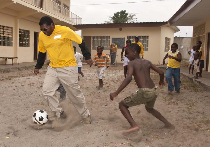 | Keywords: Flickr - Official U.S. Navy Imagery - Sailor plays soccer with Gabonese children during a community service event for Project Handclasp.jpg PORT GENTIL Gabon July 7 2011 Information Systems Technician 1st Class Damion Williams assigned to High Speed Vessel Swift HSV 2 plays soccer with Gabonese children during a community service event for Project Handclasp at the Les Cocotiers Catholic School Swift is in Gabon as part of Africa Partnership Station APS 2011 an international security cooperation initiative facilitated by Commander U S Naval Forces Europe-Africa aimed at strengthening global maritime partnerships through training and collaborative activities in order to improve maritime safety and security in Africa U S Navy photo by Mass Communication Specialist 3rd Class Ian Carver/Released 110707-N-XK513-157 http //www flickr com/photos/usnavy/5958101878/ Sailor plays soccer with Gabonese children during a community service event for Project Handclasp 2011-07-07 04 36 http //www flickr com/people/56594044 N06 Official Navy Page from United States of America MC3 Ian Carver/U S Navy Attribution License XMP-photoshop Source Navy Visual News Service PD-USGov-Military-Navy Official U S Navy Imagery http //flickr com/photos/56594044 N06/5958101878 2012-11-14 15 02 45 cc-by-2 0 Images from United States Navy to check Project Handclasp United States Navy |