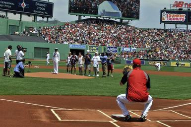 Keywords: Flickr - Official U.S. Navy Imagery - MA native-Sailor from USS Ronald Reagan, prepares to throw out the first pitch for Boston Red Sox game.jpg BOSTON July 4 2011 Aviation Ordnanceman Airman Bridget Lydon center from Squantum Mass assigned to the aircraft carrier USS Ronald Reagan CVN 76 prepares to throw out the first pitch before a Boston Red Sox game at Fenway Park Lydon temporarily left Ronald Reagan to surprise her family on Independence Day She will return to the ship to finish its current deployment U S Navy photo by Mass Communication Specialist 1st Class Dustin Q Diaz/Released 110704-N-XX000-002 http //www flickr com/photos/usnavy/5904984435/ MA native/Sailor from USS Ronald Reagan prepares to throw out the first pitch for Boston Red Sox game 2011-07-04 13 31 http //www flickr com/people/56594044 N06 Official Navy Page from United States of America MC1 Dustin Q Diaz/U S Navy Attribution License XMP-photoshop Source Navy Visual News Service PD-USGov-Military-Navy Official U S Navy Imagery http //flickr com/photos/56594044 N06/5904984435 2012-11-14 16 55 52 cc-by-2 0 Fenway Park Ceremonial first pitch Major League Baseball |