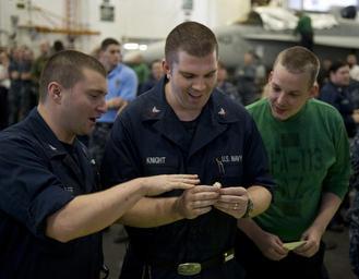 Keywords: Flickr - Official U.S. Navy Imagery - Sailor holds a Super Bowl ring during autograph signing session..jpg ARABIAN SEA Feb 16 2011 Machinist's Mate 2nd Class Kyle Knight center holds a Super Bowl championship ring during an autograph signing session with members of the Green Bay Packers football team in the hangar bay of the Nimitz-class aircraft carrier USS Carl Vinson CVN 70 The Packers beat the Pittsburg Steelers in Super Bowl XLV last month and are on a visit to the ship sponsored by Navy Entertainment The Carl Vinson Carrier Strike Group is deployed supporting maritime security operations and theater security cooperation efforts in the U S 5th Fleet area of responsibility U S Navy photo by Mass Communication Specialist 2nd Class James R Evans/Released http //www flickr com/photos/usnavy/5471742938/ Sailor holds a Super Bowl ring during autograph signing session 2011-02-16 03 40 http //www flickr com/people/56594044 N06 Official Navy Page from United States of America Mass Communication Specialist 2nd Class James R Evans/U S Navy Attribution License XMP-photoshop Source Navy Visual News Service PD-USGov-Military-Navy Official U S Navy Imagery http //flickr com/photos/56594044 N06/5471742938 2012-11-16 08 51 56 cc-by-2 0 Images from United States Navy to check |
