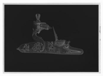 Keywords: Flintlåsbössa av fransk-nederländsk typ ca 1650, stock av Johan Eberhart Sommer, Künzelsau - Livrustkammaren - 52450-negative.tif Publius Cornelius Scipio Africanus konsul plain text Rund slätborrad pipa av stål godstjocklek vid mynningen 0 8 mm Åttsidig kammaren vid övergången en smal ring kanterna fasade 12 mm bakom ringen vid pipbasen likaså en profilerad vulst på de tre övre faserna Därframför ett dekorfält i stålsnitt l 110 mm nästan hela fältet förgyllt baktill ett snäckliknande ornament med två nedhängande bladfestonger Därframför tre ryttare alla i rustning den i mitten barhuvad fas fältherrestav i h hand den h ryttaren har stav i v hand och fana i h den v ryttaren likaså fana båda hjälmklädda Ornamentfältet framtill avslutad med liknande snäckornament med bladfestonger kompletterade med bladknippe i mitten Rektangulärt svansskruvblad svagt böjt med bladdekor i stålsnitt <br/>Riktmedel Hjärtformigt sikte av förgylld mässing stolpkorn av mässing <br/>Fästning Pipan fäst med krysskruv underifrån dold av avtryckarblecket samt tre pipstift av stål <br/><br/>Flintlås med plant låsbleck delvis något fasade kanter dekor i stålsnitt på låsblecket bakom hanen ryttare i 1600-talsdräkt med fältherrestav i bakgrunden stad till h om hanen tillbakaseende fältherre till häst i bakgrunden tält S-formig platt hane med små rundade käkar överkäken lös graverad och punsad drakdekor rundat koniskt käkskruvhuvud hanskruv med huvud täckande hela hankroppen stålsnittsdekor i form av blomma Fängpanna med liten fals på gaveln sicksackdekor Batteri med rektangulärt eldstål med rundad överkant liten profilering nertill på ryggen Batterifjäder utan studel litet sexflikigt fjäderlöv Nöt utan studel <br/>Fästning Två låsskruvar <br/>C-formig avtryckare Rektangulärt avtryckarbleck <br/><br/>Helstock av valnöt med kolv av tidig fransk typ På kolvens h och undersida snidad dekor på h sida stridsscen täckande hela sidan ryttare i antikiserande rustningar och i förgrunden till v en på marken sittande skäggig krigare som stöttas av två krigare och framför honom en yngre man som håller en häst vid tygeln Längs nederkanten en inskuren latinsk text Scipio cui magnum dives dedit Affrica nomen // pugnantem ad Trebia litus mane patrem samt i ny spalt till h Eximit ingenti pressum discrimine belli // Iam puer et tuta sub statione locat Scipio som det rika Afrika gav ett stort namn giver redan såsom gosse den tidigt vid Trebias strand kämpande fadern ett säkert hägn och borttager honom från det genom ofantliga faror tryckande kriget Längst till höger signering Iohan EberHart // Somer Kolvens undersida svagt rundad två rektangulära fält båda med krigare i helfigur det bakre med en man sedd snett bakifrån huvudet profil h på huvudet ett lejonhuvud med manen hängande ner på ryggen antik rustning och kort mantel h hand håller i oval sköld v arm upplyft och håller i stav Herkules Det främre fältets man likaså sedd snett bakifrån huvudet profil v antik rustning med hjälm o plym ingen mantel gehäng med svärd v hand vilar på höften h håller en på marken stödd sköld Framför de två fälten en i bladverk övergående maskaron Hela stocken i övrigt dekorerad med rankverk av silvertråd med blad och blommor av graverade pärlmorplattor På anslaget i rankverket dessutom 17 fåglar av olika slag däribland en uggla och fem påfåglar i mitten en med uppfälld stjärt Belag av graverat silver bakplåt fäst med sju stålspikar runt spikarna samt mitt på bakplåten graverade blad Två släta rörkor samt näsband med blomdekor Varbygel av stål med korta släta armar främre stolpen kluben och främre armen har del även bakom stolpen litet flikigt löv baktill På bygeln en hillebardiär i låg relief <br/><br/>Tillbehör <br/>Laddstock av stockens trä l 1142 mm framtill skodd med silver l 27 mm med geometrisk dekor I andra änden spår av annat beslag original caption ca 1650 walnut e3 - eldvapen - stock material valnöt - steel e127 - eldvapen - pipa lås och stockbeslag material stål - silver thread e8 - eldvapen - stockdekor material silvertråd - silver e7 - eldvapen - stockbeslag material silver - mother-of-pearl e8 - eldvapen - stockdekor material pärlemor - brass e4 - eldvapen - riktmedel material mässing g 2520 size mm 1162 pipa size mm 1555 LRK Künstlerfamilie Sommer 1985 Scipio cui magnum dives dedit Affrica nomen // pugnantem ad Trebia litus mane patrem // Eximit ingenti pressum discrimine belli // Iam puer et tuta sub statione locat anv e3 - eldvapen - stock; Elin Thegerström Iohan EberHart // Somer anv e8 - eldvapen - stockdekor; Johan Eberhard Sommer Scipio cui magnum dives dedit Affrica nomen // pugnantem ad Trebia litus mane patrem // Eximit ingenti pressum discrimine belli // Iam puer et tuta sub statione locat anv e3 - eldvapen - stock; Elin Thegerström Iohan EberHart // Somer anv e8 - eldvapen - stockdekor; Johan Eberhard Sommer place of origin original filename LN_B07996_010876 55357 inventory number LRK 18794 52450 CC0 Flintlåsbössa av fransk-nederländsk typ ca 1650 stock av Johan Eberhart Sommer Künzelsau - Livrustkammaren - 52450 tif <gallery caption Different images of same object > File Flintlåsbössa av fransk-nederländsk typ ca 1650 stock av Johan Eberhart Sommer Künzelsau - Livrustkammaren - 43890 tif File Flintlåsbössa av fransk-nederländsk typ ca 1650 stock av Johan Eberhart Sommer Künzelsau - Livrustkammaren - 81541 tif File Flintlåsbössa av fransk-nederländsk typ ca 1650 stock av Johan Eberhart Sommer Künzelsau - Livrustkammaren - 64420 tif File Flintlåsbössa av fransk-nederländsk typ ca 1650 stock av Johan Eberhart Sommer Künzelsau - Livrustkammaren - 72982 tif File Flintlåsbössa av fransk-nederländsk typ ca 1650 stock av Johan Eberhart Sommer Künzelsau - Livrustkammaren - 77798 tif File Flintlåsbössa av fransk-nederländsk typ ca 1650 stock a