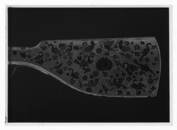 Keywords: Flintlåsbössa av fransk-nederländsk typ ca 1650, stock av Johan Eberhart Sommer, Künzelsau - Livrustkammaren - 43890-negative.tif Publius Cornelius Scipio Africanus konsul plain text Rund slätborrad pipa av stål godstjocklek vid mynningen 0 8 mm Åttsidig kammaren vid övergången en smal ring kanterna fasade 12 mm bakom ringen vid pipbasen likaså en profilerad vulst på de tre övre faserna Därframför ett dekorfält i stålsnitt l 110 mm nästan hela fältet förgyllt baktill ett snäckliknande ornament med två nedhängande bladfestonger Därframför tre ryttare alla i rustning den i mitten barhuvad fas fältherrestav i h hand den h ryttaren har stav i v hand och fana i h den v ryttaren likaså fana båda hjälmklädda Ornamentfältet framtill avslutad med liknande snäckornament med bladfestonger kompletterade med bladknippe i mitten Rektangulärt svansskruvblad svagt böjt med bladdekor i stålsnitt <br/>Riktmedel Hjärtformigt sikte av förgylld mässing stolpkorn av mässing <br/>Fästning Pipan fäst med krysskruv underifrån dold av avtryckarblecket samt tre pipstift av stål <br/><br/>Flintlås med plant låsbleck delvis något fasade kanter dekor i stålsnitt på låsblecket bakom hanen ryttare i 1600-talsdräkt med fältherrestav i bakgrunden stad till h om hanen tillbakaseende fältherre till häst i bakgrunden tält S-formig platt hane med små rundade käkar överkäken lös graverad och punsad drakdekor rundat koniskt käkskruvhuvud hanskruv med huvud täckande hela hankroppen stålsnittsdekor i form av blomma Fängpanna med liten fals på gaveln sicksackdekor Batteri med rektangulärt eldstål med rundad överkant liten profilering nertill på ryggen Batterifjäder utan studel litet sexflikigt fjäderlöv Nöt utan studel <br/>Fästning Två låsskruvar <br/>C-formig avtryckare Rektangulärt avtryckarbleck <br/><br/>Helstock av valnöt med kolv av tidig fransk typ På kolvens h och undersida snidad dekor på h sida stridsscen täckande hela sidan ryttare i antikiserande rustningar och i förgrunden till v en på marken sittande skäggig krigare som stöttas av två krigare och framför honom en yngre man som håller en häst vid tygeln Längs nederkanten en inskuren latinsk text Scipio cui magnum dives dedit Affrica nomen // pugnantem ad Trebia litus mane patrem samt i ny spalt till h Eximit ingenti pressum discrimine belli // Iam puer et tuta sub statione locat Scipio som det rika Afrika gav ett stort namn giver redan såsom gosse den tidigt vid Trebias strand kämpande fadern ett säkert hägn och borttager honom från det genom ofantliga faror tryckande kriget Längst till höger signering Iohan EberHart // Somer Kolvens undersida svagt rundad två rektangulära fält båda med krigare i helfigur det bakre med en man sedd snett bakifrån huvudet profil h på huvudet ett lejonhuvud med manen hängande ner på ryggen antik rustning och kort mantel h hand håller i oval sköld v arm upplyft och håller i stav Herkules Det främre fältets man likaså sedd snett bakifrån huvudet profil v antik rustning med hjälm o plym ingen mantel gehäng med svärd v hand vilar på höften h håller en på marken stödd sköld Framför de två fälten en i bladverk övergående maskaron Hela stocken i övrigt dekorerad med rankverk av silvertråd med blad och blommor av graverade pärlmorplattor På anslaget i rankverket dessutom 17 fåglar av olika slag däribland en uggla och fem påfåglar i mitten en med uppfälld stjärt Belag av graverat silver bakplåt fäst med sju stålspikar runt spikarna samt mitt på bakplåten graverade blad Två släta rörkor samt näsband med blomdekor Varbygel av stål med korta släta armar främre stolpen kluben och främre armen har del även bakom stolpen litet flikigt löv baktill På bygeln en hillebardiär i låg relief <br/><br/>Tillbehör <br/>Laddstock av stockens trä l 1142 mm framtill skodd med silver l 27 mm med geometrisk dekor I andra änden spår av annat beslag original caption ca 1650 walnut e3 - eldvapen - stock material valnöt - steel e127 - eldvapen - pipa lås och stockbeslag material stål - silver thread e8 - eldvapen - stockdekor material silvertråd - silver e7 - eldvapen - stockbeslag material silver - mother-of-pearl e8 - eldvapen - stockdekor material pärlemor - brass e4 - eldvapen - riktmedel material mässing g 2520 size mm 1162 pipa size mm 1555 LRK Künstlerfamilie Sommer 1985 Scipio cui magnum dives dedit Affrica nomen // pugnantem ad Trebia litus mane patrem // Eximit ingenti pressum discrimine belli // Iam puer et tuta sub statione locat anv e3 - eldvapen - stock; Elin Thegerström Iohan EberHart // Somer anv e8 - eldvapen - stockdekor; Johan Eberhard Sommer Scipio cui magnum dives dedit Affrica nomen // pugnantem ad Trebia litus mane patrem // Eximit ingenti pressum discrimine belli // Iam puer et tuta sub statione locat anv e3 - eldvapen - stock; Elin Thegerström Iohan EberHart // Somer anv e8 - eldvapen - stockdekor; Johan Eberhard Sommer place of origin original filename LN_B07995_010875 55357 inventory number LRK 18794 43890 CC0 Flintlåsbössa av fransk-nederländsk typ ca 1650 stock av Johan Eberhart Sommer Künzelsau - Livrustkammaren - 43890 tif <gallery caption Different images of same object > File Flintlåsbössa av fransk-nederländsk typ ca 1650 stock av Johan Eberhart Sommer Künzelsau - Livrustkammaren - 81541 tif File Flintlåsbössa av fransk-nederländsk typ ca 1650 stock av Johan Eberhart Sommer Künzelsau - Livrustkammaren - 64420 tif File Flintlåsbössa av fransk-nederländsk typ ca 1650 stock av Johan Eberhart Sommer Künzelsau - Livrustkammaren - 72982 tif File Flintlåsbössa av fransk-nederländsk typ ca 1650 stock av Johan Eberhart Sommer Künzelsau - Livrustkammaren - 77798 tif File Flintlåsbössa av fransk-nederländsk typ ca 1650 stock av Johan Eberhart Sommer Künzelsau - Livrustkammaren - 13151 tif File Flintlåsbössa av fransk-nederländsk typ ca 1650 stock a