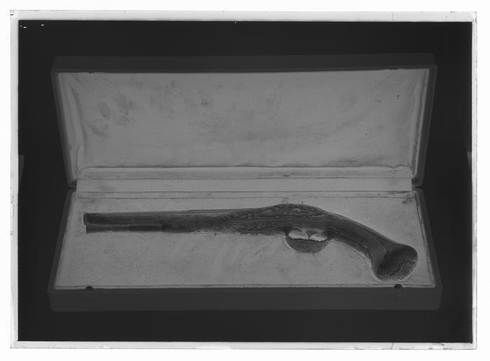 | Keywords: Flintlåspistol ändrad till slaglås. Felix Meier, Wien ca 1719-1721 - Livrustkammaren - 60519-negative.tif Slätborrad brunerad pipa med åttsidig kammare vid övergången till det främre runda partiet ett tvärgående profilerat band På pipbasen i guld ett spegelmonogram T G B krönt av en grevekrona samt signatur FELIX MEIER På svansskruvbladet enkel kantdekor På pipans h sida en pålödd tändhattssnäcka <br/>Riktmedel Siktskåra på svansskruvbladet spolformigt stolpkorn av mässing <br/>Fästning Ett häfte två pipstift av stål <br/><br/>Flintlås ändrat till slaglås Plant låsbleck med fasade kanter graverad dekor Bakom hanen en trofégrupp med fanor och sabelklingor framför hanen en hjälmprydd mansfigur med fanor trumma och pilar samt ovanför detta signatur FELIX MEIER bakom hanen IN WIENN Hanen slät och kantig hanskruv med skåra samt solformigt ingraverade streck <br/>Fästning Två låsskruvar <br/>Avtryckare med upprullad ände <br/><br/>Stock av valnöt med snidad volutdekor runt spetsrörka och svansskruvblad Snidad kantdekor över hela stocken Beslag av förgylld mässing med genomgående snidade och graverade voluter c-formiga bågar och rankor Kolvkappa med svagt fyrpassformig toppig centrumplatta på sidorna krigare med hjälmar av antiktyp flikar gående till låset Tumplåt med Bielke-vapen krönt av grevekrona sköldhållare två gripar Genombrutet sidbleck av kraftiga voluter och bågar Oval bred varbygel med kantdekor som övrig dekor på mitten medaljong med krigare som på kolvkappan På bakre fästet graverat No 6 En rörka bakåtutdragen i spets Näsband med samma dekor mot horisontellt skrafferad bakgrund <br/><br/>Tillbehör <br/>Laddstock av trä l 265 mm hornskoning original caption Livrustkammarens jubileum 1928 other date - 1719 1721 steel e12 - eldvapen - pipa och lås material stål - brass e47 - eldvapen - riktmedel och stockbeslag material mässing - walnut d3 - dräkt - mellanfoder material valnöt kg 1025 size mm 436 size mm 264 pipa size mm 130 LRK Ture Gabriel Bielke greve riksråd 1684-1763 Stockholm Sverige J G Ormested herr FELIX MEIER IN WIENN Felix Meier in Wienn anv e2 - eldvapen - lås; Felix Meier Meyer FELIX MEIER Felix Meier Meyer T G B o grevekrona anv e1 - eldvapen - pipa; Ture Gabriel Bielke FELIX MEIER IN WIENN Felix Meier in Wienn anv e2 - eldvapen - lås; Felix Meier Meyer FELIX MEIER Felix Meier Meyer T G B o grevekrona anv e1 - eldvapen - pipa; Ture Gabriel Bielke place of origin original filename LN_B03077_005957 41858 inventory number LRK 5201 60519 CC0 Flintlåspistol ändrad till slaglås Felix Meier Wien ca 1719-1721 - Livrustkammaren - 60519 tif |