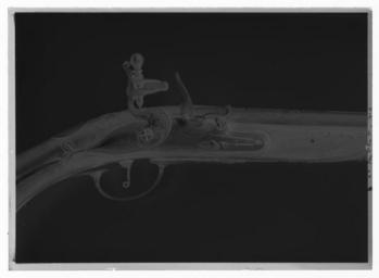 | Keywords: Flintlåspistol, Hans Zimmerman, silverbeslag troligen av Daniel Schwarzkopf - Livrustkammaren - 18412-negative.tif Rund slätborrad pipa av stål kammarens bakre del kantig överfasen avbruten av snidade blad och voluter och fortsätter som en plan list fram till kornet samt med ett blad fram till mynningen Böjt svansskruvblad med rundad ände bakom skruvhålet inhugget 4 <br/>Riktmedel Vid pipbasen en profilerad vulst infilad siktskåra Spolformigt korn av silver <br/>Fästning Två häften pipan fäst med krysskruv samt ett urspr två pipstift av stål <br/><br/>Flintlås av stål med välvt låsbleck med smal kantlist graverad dekor i form av dubbla kantlinjer Graverad signatur följande hanens och fängpannans rundningar HANS // ZIMMERMAN // COPENHAGEN S-formigt svängd rundad hane med kantlist och rankdekor med drakhuvud i stålsnitt Hanskruv med x-skåra Runda käkar överkäken låg och blånerad blånerad käkskruv med balusterformigt huvud Rundad fängpanna med skålad fals blad i stålsnitt på ytteränden Batteri med välvt fängpannelock och eldstål på eldstålet kantlister och bladvolut i stålsnitt Batterifjäder med delvis fasade kanter bladdekor bet-formigt fjäderlöv <br/>Fästning Två låsskruvar <br/>Avtryckare med upprullad ände Konturerat avtryckarbleck av blånerat stål <br/><br/>Helstock av valnöt med sliten snidad bladdekor vid svansskruvbladet snidade grenar Näsband av horn Beslag av silver Kolvkappa med långa flikar på kolvsidorna blad- och pärlstavsdekor släta kantlister Oval centrumplatta med lejonmaskaron i relief på plattans insida en silverstav fäst med skruv från varbygelurtaget Under centrumplattan på kolvkappan delvis otydliga silverstämplar otydligare än på nr 4709 Köpenhamn 170 guardein-stämpel CLWM Conrad Ludolf 1679-1729 månadsstämpeln saknas delvis utplånad mästarstämpel D K Böje nr 315 Daniel Schwarzkopf 1699-1727 Oval slät tumplåt med graverat vapen delvis bortslitet krönt med furstligkrona sköldhållare två lejon Hjärtsköld Oranien-Chalon-Geneve åtföljd av ovan Meurs och nedan Bueren Fält 1 Nassau 2 Katzenellenbogen 3 Vianden 4 Dietz 5 Spiegelberg 6 Liessfeldt Sidbleck i form av ett genombrutet rankverk med drakhuvud En + en profilerad rörka slät spets med graverade blad Varbygeln välvd med kantlister främre armen 8-formig med symmetriskt genombrutet ändblad lång bakre arm med rundad ände blad i relief mittpå bakre armen graverat N 4 original caption - 1702 1711 steel e127 - eldvapen - pipa lås och stockbeslag material stål - silver e47 - eldvapen - riktmedel och stockbeslag material silver - walnut e3 - eldvapen - stock material valnöt - horn e7 - eldvapen - stockbeslag material horn size mm 470 size mm 289 pipa g 960 LRK Johan Wilhelm Friso Nassau-Dietz prins Fredrik I av Sverige C L M W anv e7 - eldvapen - stockbeslag; Condrad Ludolf HANS ZIMMERMAN COPENHAGEN anv e2 - eldvapen - lås; Hans Christian Zimmermann Timmermand C L M W anv e7 - eldvapen - stockbeslag; Condrad Ludolf HANS ZIMMERMAN COPENHAGEN anv e2 - eldvapen - lås; Hans Christian Zimmermann Timmermand place of origin original filename LN_B10032_012912 41225 inventory number LRK 4710 18412 CC0 Flintlåspistol Hans Zimmerman silverbeslag troligen av Daniel Schwarzkopf - Livrustkammaren - 18412 tif |