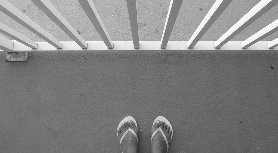 Keywords: flip-flops feet balcony footwear clothing standing shoes barefoot