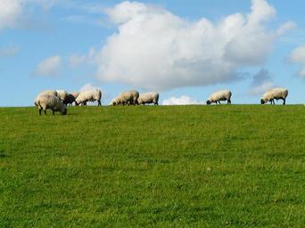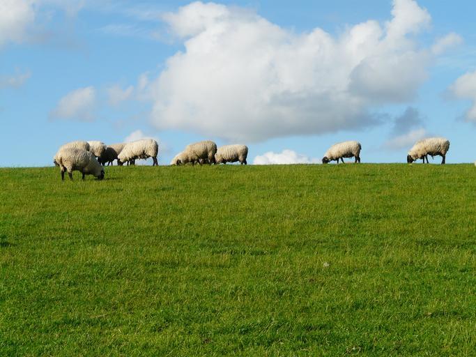 Keywords: flock of sheep sheep rhön sheep dike meadow grass north sea landscape idyll rest relaxation fresh chill out