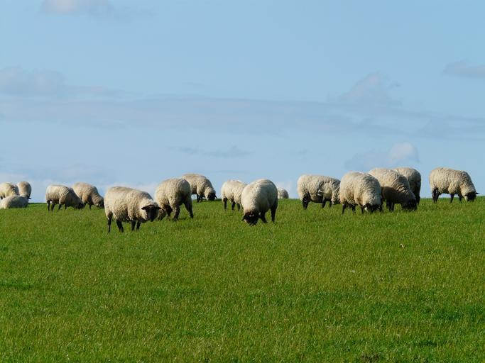 Keywords: flock of sheep sheep rhön sheep dike meadow grass north sea landscape idyll rest relaxation fresh chill out