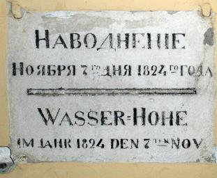 | Keywords: Flood StPetersburg 1824.jpg ru Табличка о наводнении 1824 года в Санкт-Пете бу ге на пе есечении Съездовской линии и Большого п оспекта Васильевского ост ова en Table about flood of 1824 in Saint Petersburg own BiOBER 2009-01-01 Flood level signs in Saint Petersburg 1824 Bolshoi Prospekt Vasilievsky Island German inscriptions in Russia Bilingual signs in Russia Plaques referencing 1824 Saint Petersburg Floods 1824 | ||||