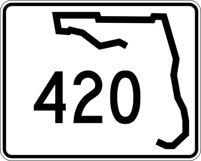 Keywords: Florida 420.svg 30 in by 24 in 750 mm by 600 mm Florida State Road shield made to the specifications of the http //www dot state fl us/rddesign/rd/RTDS/17355s1-12of12 pdf sign detail Uses the http //www triskele com/fonts/index html Roadgeek 2005 fonts United States law does not permit the copyrighting of typeface designs and the fonts are meant to be copies of a U S Government-produced work anyway The outside border has a width of 1 1/16 in and a color of black so it shows up; in reality signs have no outside border Note that the drawing does not provide the border width or curve radii The previous page does but seems very inaccurate Thus those measurements are approximated from the drawing The state outline is extracted from the PDF and cleaned up to make the inside match the outside own SPUI spuiother Florida State Road shields 420 420 number |