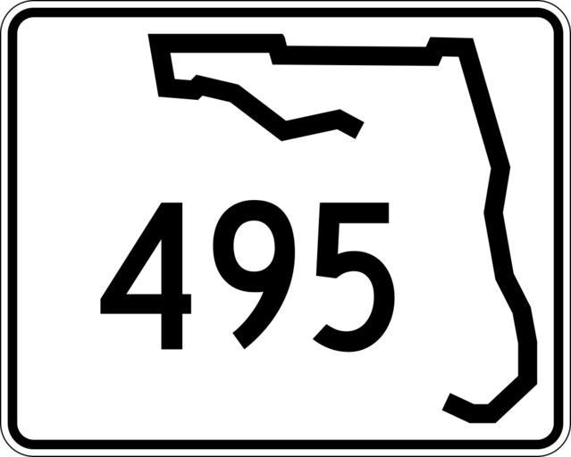 | Keywords: Florida 495.svg  30 in by 24 in 750 mm by 600 mm Florida State Road shield made to the specifications of the http //www dot state fl us/rddesign/rd/RTDS/17355s1-12of12 pdf sign detail Uses the http //www triskele com/fonts/index html Roadgeek 2005 fonts United States law does not permit the copyrighting of typeface designs and the fonts are meant to be copies of a U S Government-produced work anyway The outside border has a width of 1 1/16 in and a color of black so it shows up; in reality signs have no outside border Note that the drawing does not provide the border width or curve radii The previous page does but seems very inaccurate Thus those measurements are approximated from the drawing The state outline is extracted from the PDF and cleaned up to make the inside match the outside own SPUI spuiother Florida State Road shields 495 495 number |