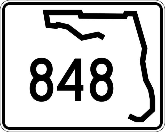Keywords: Florida 848.svg 30 in by 24 in 750 mm by 600 mm Florida State Road shield made to the specifications of the http //www dot state fl us/rddesign/rd/RTDS/17355s1-12of12 pdf sign detail Uses the http //www triskele com/fonts/index html Roadgeek 2005 fonts United States law does not permit the copyrighting of typeface designs and the fonts are meant to be copies of a U S Government-produced work anyway The outside border has a width of 1 1/16 in and a color of black so it shows up; in reality signs have no outside border Note that the drawing does not provide the border width or curve radii The previous page does but seems very inaccurate Thus those measurements are approximated from the drawing The state outline is extracted from the PDF and cleaned up to make the inside match the outside own SPUI spuiother Florida State Road shields 848 848 number |