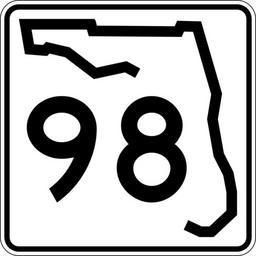 Keywords: Florida 98.svg 24 in by 24 in 600 mm by 600 mm Florida State Road shield made to the specifications of the http //www dot state fl us/rddesign/rd/RTDS/17355s1-12of12 pdf sign detail Uses the http //www triskele com/fonts/index html Roadgeek 2005 fonts United States law does not permit the copyrighting of typeface designs and the fonts are meant to be copies of a U S Government-produced work anyway The outside border has a width of 1 1/16 in and a color of black so it shows up; in reality signs have no outside border Note that the drawing does not provide the border width or curve radii The previous page does but seems very inaccurate Thus those measurements are approximated from the drawing The state outline is extracted from the PDF and cleaned up to make the inside match the outside own SPUI spuiother Florida State Road shields 098 98 number