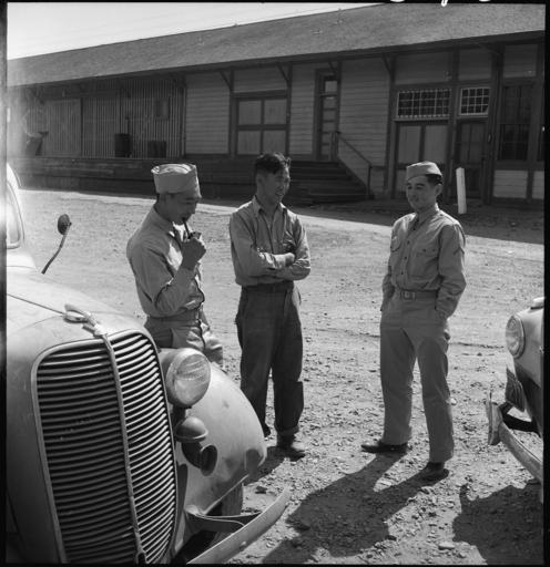 Keywords: Florin, California. Two of the nine soldiers of Japanese ancestry, now in the Army of the United St . . . - NARA - 537856.jpg Scope and content The full caption for this photograph reads Florin California Two of the nine soldiers of Japanese ancestry now in the Army of the United States who were granted furloughs in order that they might assist their families get ready for the evacuation of all persons of Japanese ancestry from their homes on the west coast Here they are seen chatting with friends of their high school days General notes 537856 Local identifier 210-G-C546 Department of the Interior War Relocation Authority 02/16/1944 - 06/30/1946 NARA-Author Lange Dorothea 1895-1965 Photographer 1372774 <br /> Still Picture Records Section Special Media Archives Services Division NWCS-S National Archives at College Park 8601 Adelphi Road College Park MD 20740-6001 1942-05-10 Record group Record Group 210 Records of the War Relocation Authority 1941 - 1989 Record group ARC 537 Central Photographic File of the War Relocation Authority compiled 1942 - 1945 Series ARC 536000 File unit File unit ARC Variant control numbers NAIL Control Number NWDNS-210-G-C546 Other versions <gallery> File Florin _California _Two_of_the_nine_soldiers_of_Japanese_ancestry _now_in_the_Army_of_the_United_St_ _ _ _-_NARA_-_537856 tif tif File Florin _California _Two_of_the_nine_soldiers_of_Japanese_ancestry _now_in_the_Army_of_the_United_St_ _ _ _-_NARA_-_537856 jpg jpg </gallery> NARA-cooperation PD-USGov Dorothea Lange Japanese American internment processing in Florin