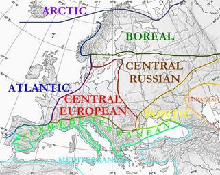 | Keywords: Floristic regions in Europe (english).png Floristic regions in Europe and western Siberia according to Wolfgang Frey and Rainer Lösch The central european region and the central russian region are sister regions The border between them is similar to the Fagus sylvatica limit January day-time temperature average above -2°C The border between the central russian region and the boreal region is similar to the Quercus spp limit Day-time temperature average above 10°C 4 months per year The border between the boreal region and the arctic region is similar to the tree line taiga/ arctic tundra limit July day-time temperature average above 10°C The border of the atlantic region is the limit of no frost average Gulf Stream influence The warm islands in the Atlantic ocean are in the macaronesia region isolated populations in a more humid environment The mediterranean region is similar to the occurrence of wild Olea europea and wild Cistus salviifolius Olea europea is grown very North in Italy The border between the submediterranean region and the central european region is similar to the alpine arc upper Rhone upper Rhine lower Danube a weather barrier The pontic region border is similar to the tree line/ steppe limit less than 450 mm precipitation per year The turanian region has a semi-arid climate References Frey W Lösch R 2004 Lehrbuch der Geobotanik Elsevier Spektrum; München Heidelberg; ISBN 3-8274-1193-9 graphic modified from Walter H 1954 Grundlagen der Pflanzenverbreitung Einführung in die Pflanzengeographie II Teil Arealkunde Ulmer Stuttgart-Ludwigsburg Frey W Lösch R 2010 Geobotanik Pflanzen und Vegetation in Raum und Zeit 3 ed Spektrum Heidelberg ISBN 978-3-8274-2335-1 Régions floristiques européennes actuelles Europe et Siberie occidentale selon Wolfgang Frey et Rainer Lösch Own 2008 User Olahus Floristic regions in Europe-de png Biogeographical maps of Europe |