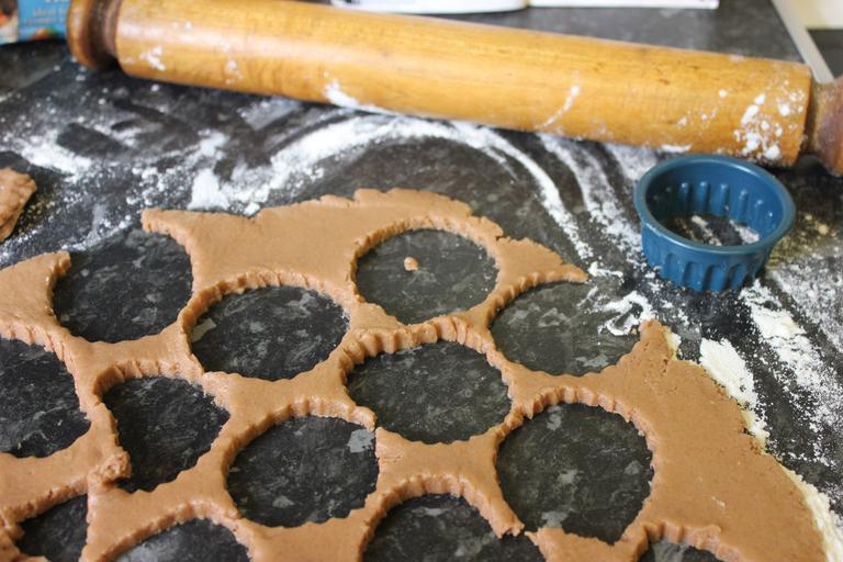 Keywords: floured surface baking cookies leftover cookie dough rolling pin cookie dough