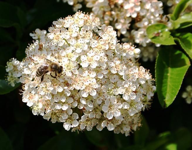 Keywords: flower bee white bee blossom bloom nature insect plant close garden flora spring umbel white blossom insect bloom