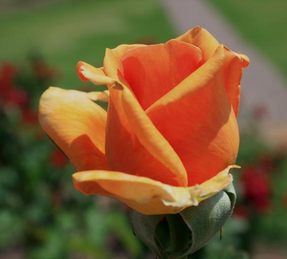 Keywords: flower bloom bud rose tea orange petals soft velvety delicate garden