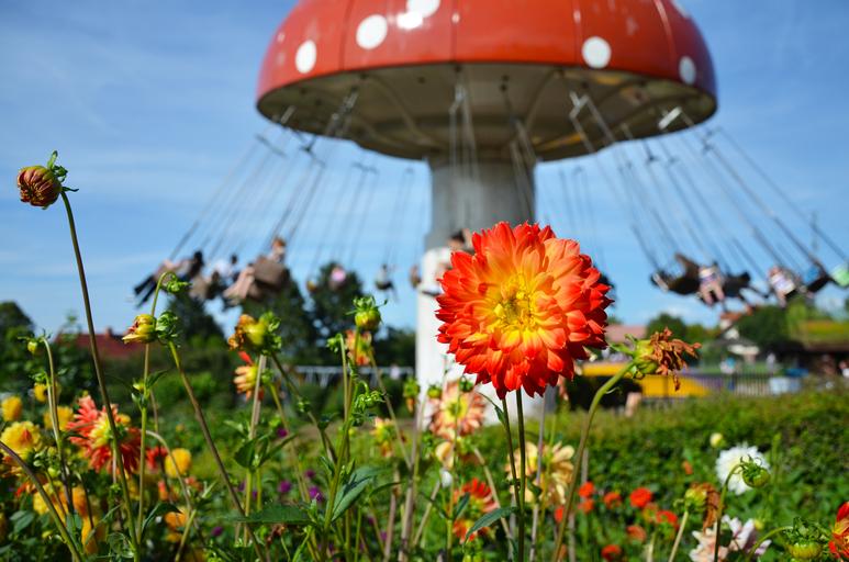Keywords: flower dahlia blossom bloom plant red flower garden garden plant orange fly agaric carousel nature garden