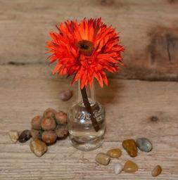 Keywords: flower dekoblume plastic flower red stones decorative stones wood vase decorative glass decoration deco