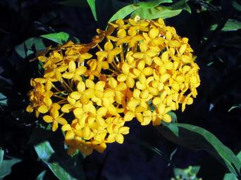 Keywords: flower ixora yellow exotic yellow flower pompom botany