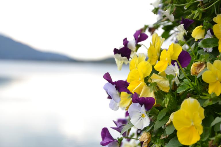 Keywords: flower lake mountain flowers yellow spring summer pansy