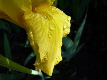 Keywords: flower macro yellow iris dew drop garden light and shade