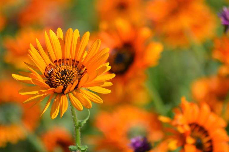 Keywords: flower nature pollen summer flowers orange blossom petals garden green orange spring summer marguerite orange marguerite daisy