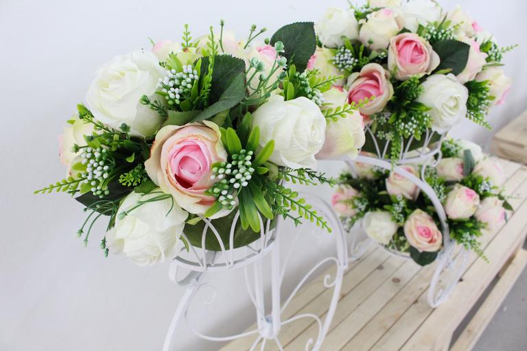 Keywords: flower pink flower white flower garden bicycle bouquet cheerful blooming season sweet petals flora garden