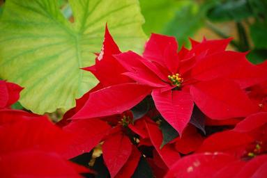 Keywords: flower poinsettia plant bloom bright leaves red christmas
