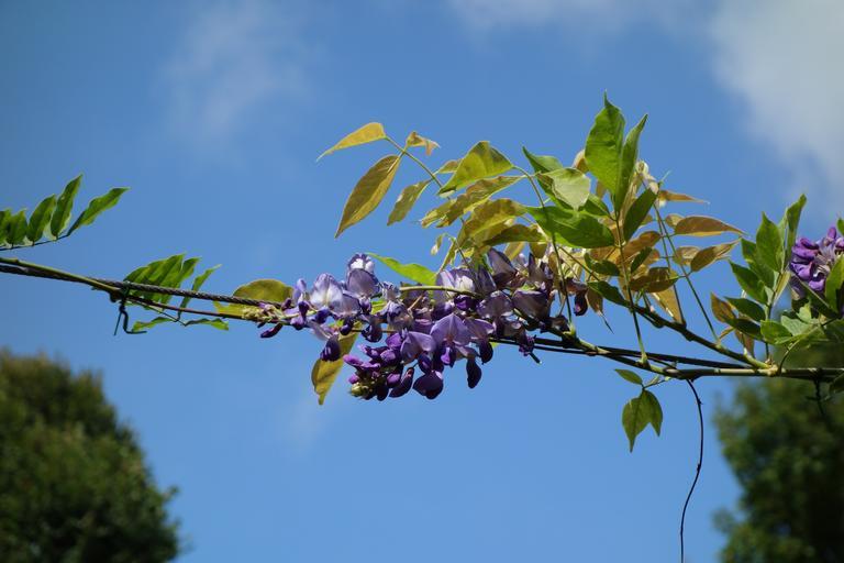 Keywords: flower purple glycine blue sky public garden nature spring summer