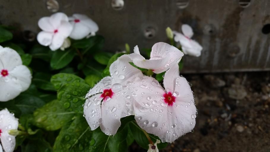 Keywords: flower raindrops dew plant flora white nature beautiful red summer