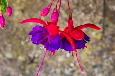 Keywords: flower red purple petals blossom vibrant bloom outdoors garden colorful spring nature plant