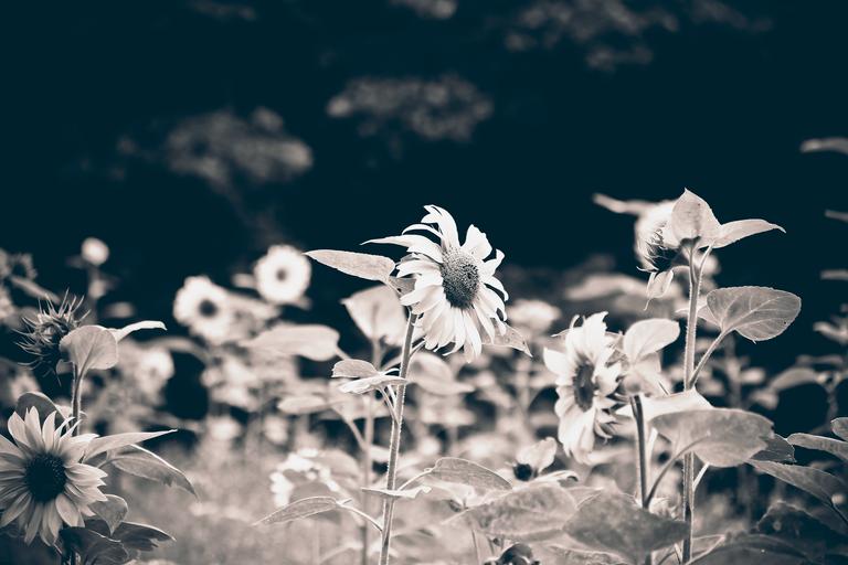 Keywords: flower sun flower nature blossom bloom plant field flora black white black and white mood white blossom white