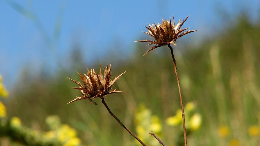 Keywords: flower thistle floral day green blue sky summer flora grass natural sunny