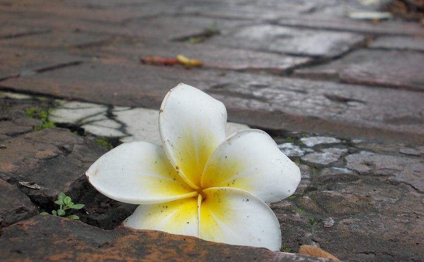 Keywords: flower white yellow frangipani tropical kalachuchi bloom fragrant fallen