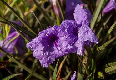 Keywords: flowers blooms purple raindrop wet sunny bright colourful garden blossom flora