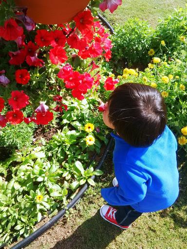 Keywords: flowers boy park kid nature happy child outdoor adorable young summer