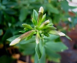 Keywords: flowers buds white opening star burst leaves green