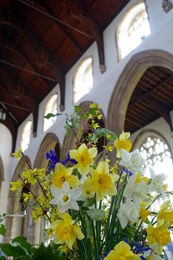 Keywords: flowers cathedral yellow daffodils religion church gothic